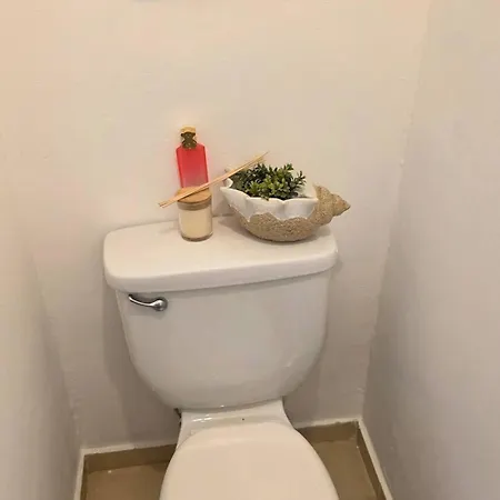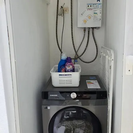 Bathroom facilities at Comfortable Home In Gated Santo Domingo Community also include a shower and a washing machine.
